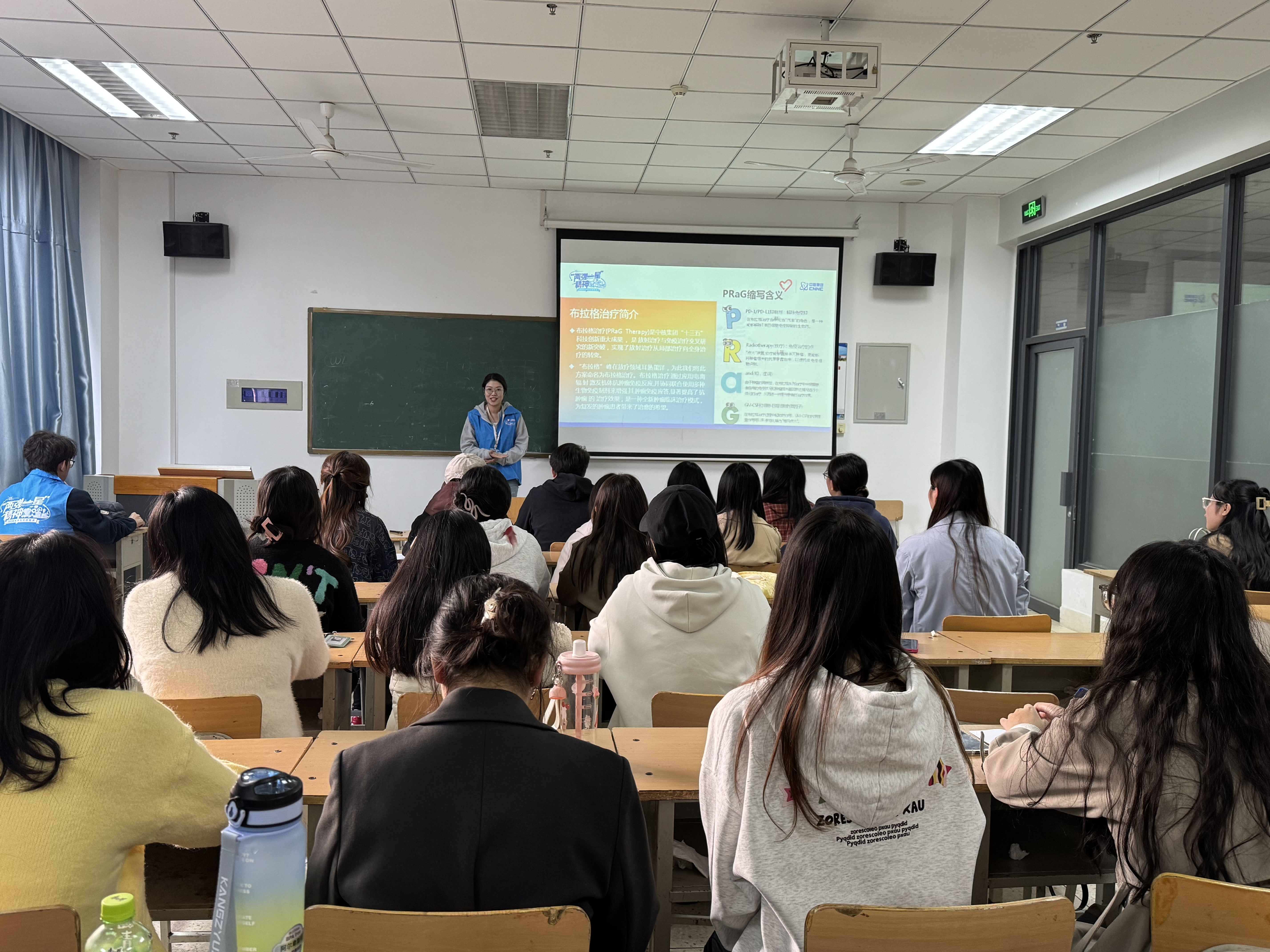 接着,宣讲团团员朱洁对“两弹一星”的产生背景、历史意义和时代价值作了详尽而细致的阐述。通过讲述老一辈科学家在极端困难的环境下,自力更生,成功研制出原子弹、氢弹、人造卫星等先进技术的动人事迹,深深打动了每一位同学。他们都表示,要以老一辈科学家的高尚情操为榜样,为我国科学技术的独立发展做出应有的贡献。
