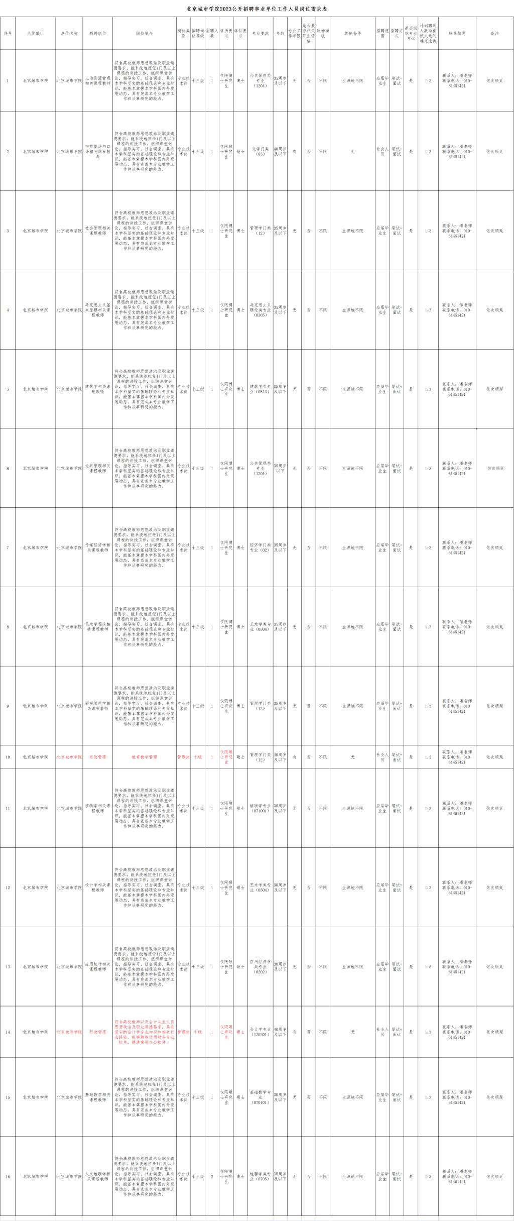 (七)招聘单位所规定的相应条件:岗位要求见附件,其中专业要求参照教育部相关专业目录执行;工作地点位于顺义区木燕路杨镇(顺义校区),能够承担坐班及值班工作。