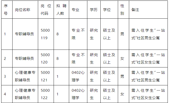 (八)应聘者需要在本科或研究生期间担任一年以上员工干部或者具有一年及以上高校工作经历。员工干部的界定范围如下:班长、副班长、班级委员,党、团支部书记、副书记、支部委员,校院系员工会主席、副主席、部长、副部长,校社团负责人等。工作经历时间计算截止到2025年2月28日,在校员工在读期间参加勤工俭学、实习等不视为工作经历。应聘心理健康专职辅导员岗位的人员同时还要求具有扎实的专业能力和业务水平,能够独立开展心理健康教育、心理咨询等工作,具有较好的科研能力。